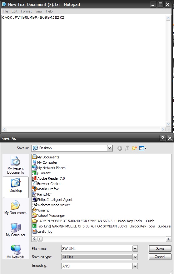 5) Copiati codul de deblocare intr-un fisier Notpad si salvati-l cu denumirea SW.UNL aveti mare grija sa nu uitati sa schimbati extensia din TXT in UNL.